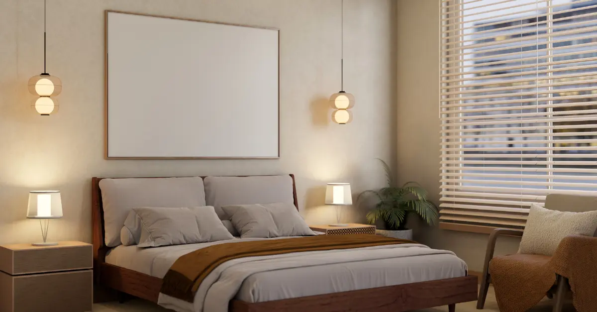 A stylish option for bedrooms, as they can be used to create a warm, comfortable ambience.Lighting in a bedroom can be designed to fulfill several objectives, such as providing adequate visibility for daily activities, creating an atmosphere conducive to relaxation and rest, adding decorative elements to enhance the room's aesthetics, and taking into account the occupants' individual needs for visual comfort.